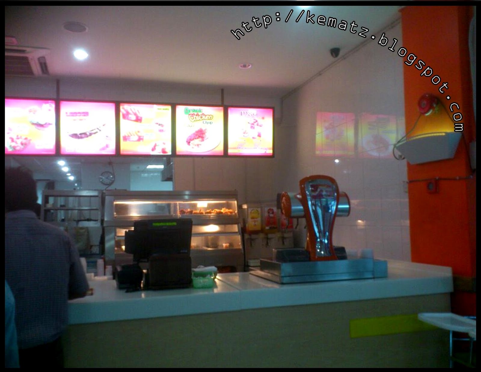 so sampai ... as biasalahh macam juga dekat McDonald or KFC ... beratur dan buat pilihan menu apa yang nak diorder ... hehehehe so aku time tu just order set apa nama dia aku tak sure ... tapi ada 2 ketul ayam ... mashed potatoes .. coslow ... dan roti bun ... serta air .. aku just order air Oren ... coz aku lihat ianya bukan lahh keluaran product F&N bagai kan .. so confirm COLA dia akan rasa lain macam ... :-/